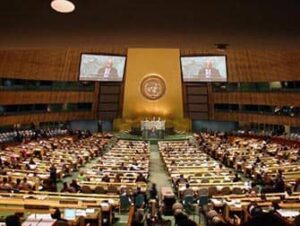 De Verenigde Naties (VN) is in 1945 opgericht door 51 landen voor een betere samenwerking op het gebied van onder andere mensenrechten, veiligheid en de wereldeconomie. Sinds 2011 zijn 193 staten lid van de VN. Het VN hoofdkantoor ligt in een speciale, onschendbare internationale zone die aan alle 193 lidstaten toebehoort. Binnen deze zone heeft de VN een eigen beveiligings- en brandweereenheid en ook een eigen postadministratie.