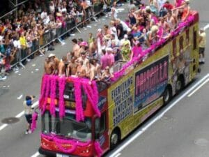 De NYC Pride March (Pride Parade) is het bekendste symbool van de NYC Pride. Iedereen is uitgenodigd om te komen kijken. Wat u kunt verwachten is een kleurrijke stoet met meer dan 700 wagens en heel veel feestende mensen!