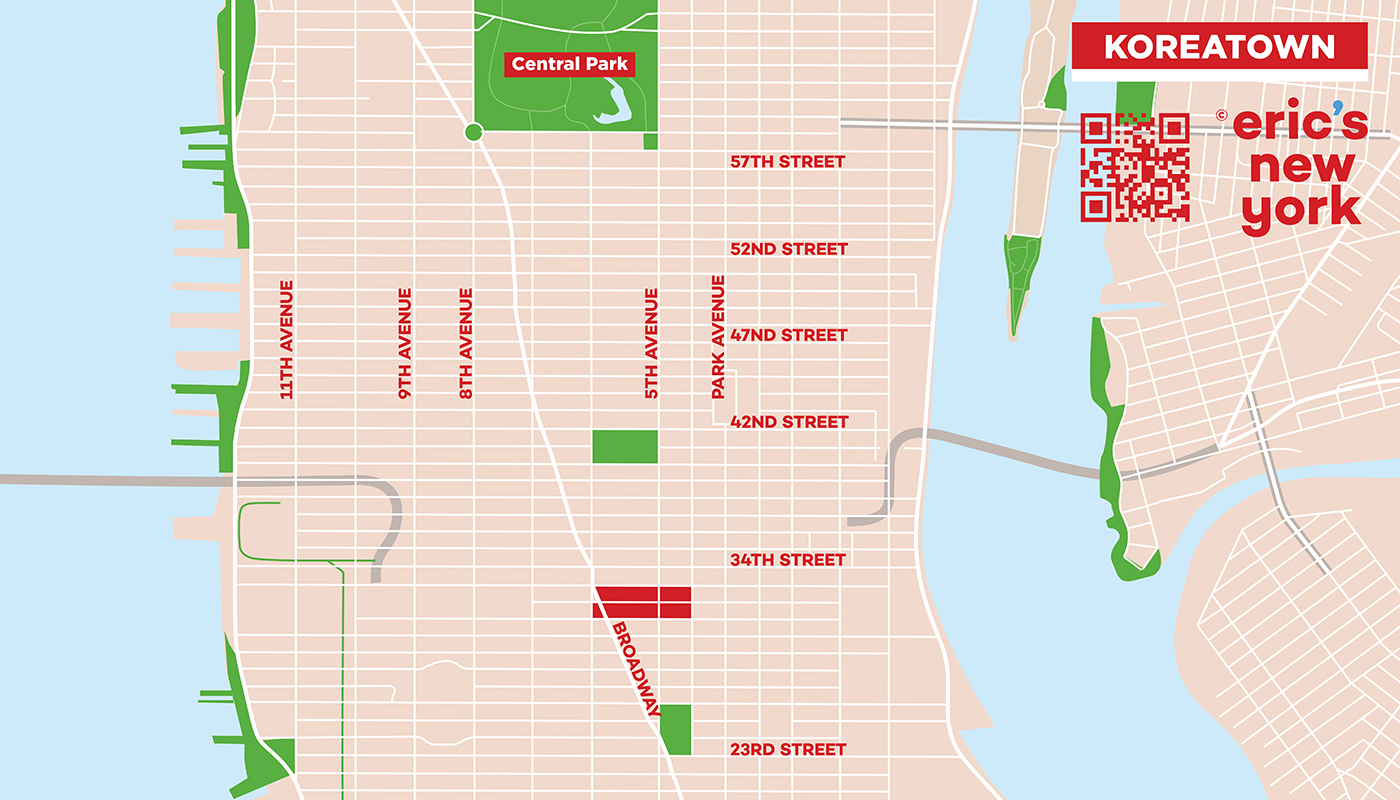 Koreatown bevindt zich in Midtown Manhattan. Wanneer u een dagje sightseeing doet in New York, is het vaak het gemakkelijkst om hierheen te lopen. Indien u vanuit andere delen van Manhattan reist, kunt u de metro nemen om hier te komen. Het dichtstbijzijnde metrostation is 34 St-Herald Sq, waar u de metrolijnen BDFM en NQRW kunt nemen.