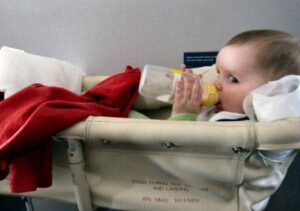 Het is namelijk zo dat bij de zogenaamde “bulkhead seats” een babybedje bevestigd kan worden dat wordt verstrekt door de maatschappij zelf. Het maakt de reis voor de baby en de ouders veel gemakkelijker. Het is mij echter slechts één keer gelukt deze stoelen te krijgen. De overige keren werden ze bezet door mensen zonder kinderen.