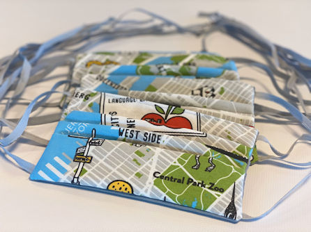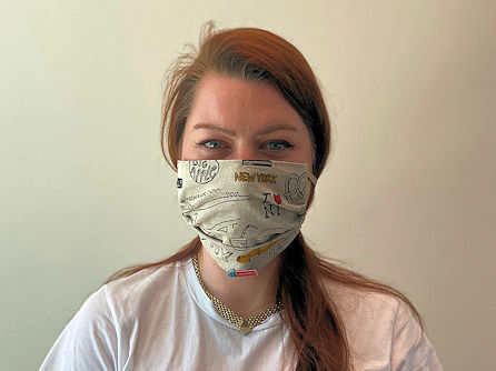 Ik heb mijn moeder, die haar hele leven al in de weer is met een naaimachine, gevraagd of zij mondkapjes kan maken. En na een paar tests is het gelukt om een goed model te fabriceren. Uiteraard in New York-style!