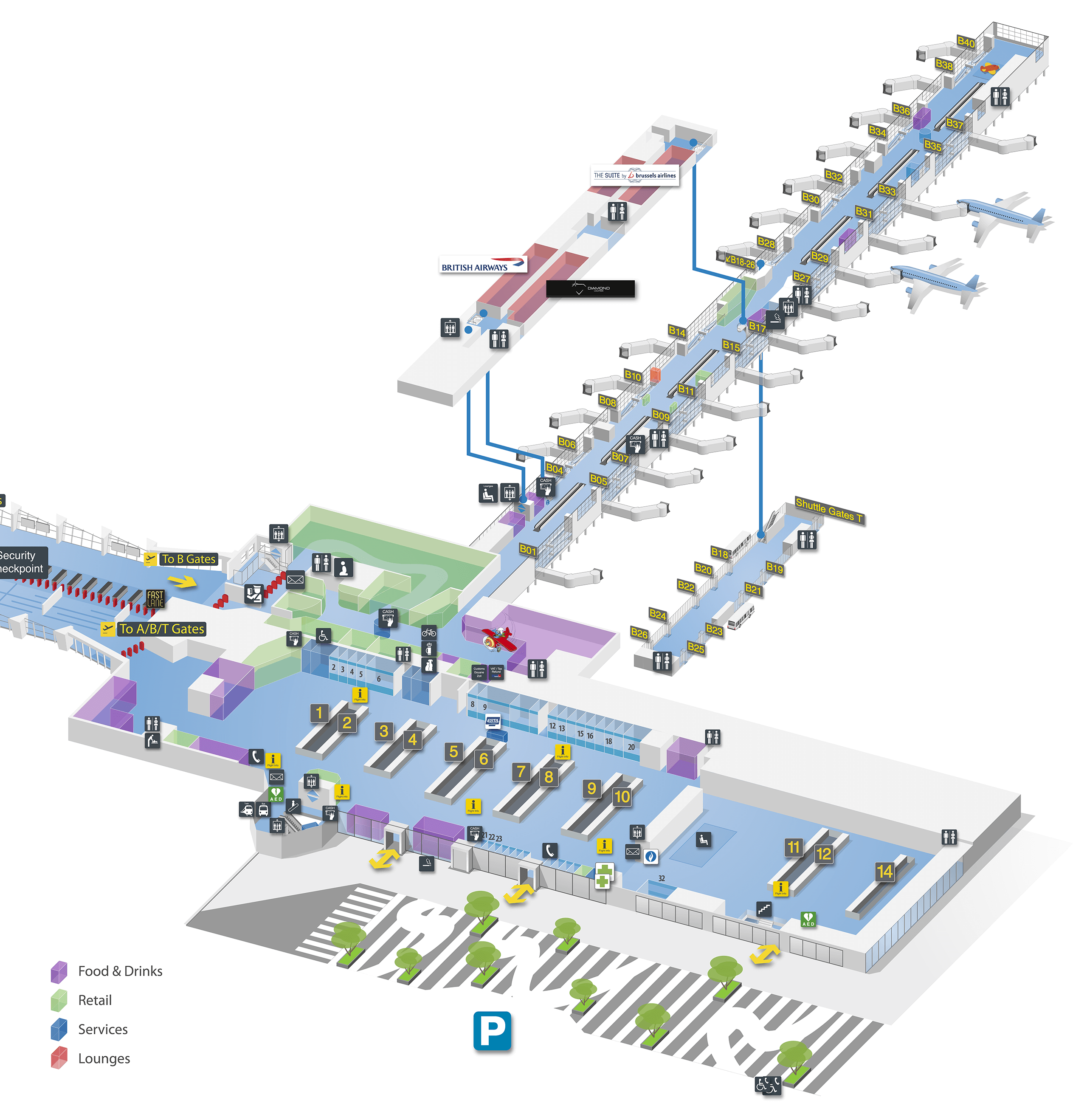Ga goed voorbereid op reis, bekijk alvast de plattegrond van de luchthaven. Zo weet u van tevoren alvast waar u moet zijn en begint u zorgeloos aan uw vakantie.